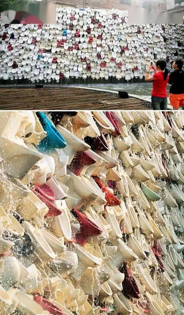 马桶瀑布,是陶瓷艺术家魏华设计的一组装置艺术品,该艺术品由上万只马桶组成,长100多米,高5米,安放在佛山市石湾公园内,已成为佛山市的一道景观墙。