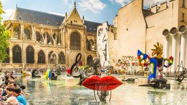 座落于圣梅里教堂十六世纪华丽的哥特式建筑与被爱打趣的法国雕塑家让·丁格力称为"卓越的怪物"的蓬皮杜中心之间,斯特拉文斯基喷泉必定会让哪怕最自得的艺术史学家露出微笑。作为根据1978年颁布的总统令委托建造的巴黎七座新喷泉之一,这座让·丁格力和尼基·德·圣法罗设计的多彩而富于动感的喷泉唤醒了伊戈尔·斯特拉文斯基这位出生于俄罗斯的作曲家作品的主题。