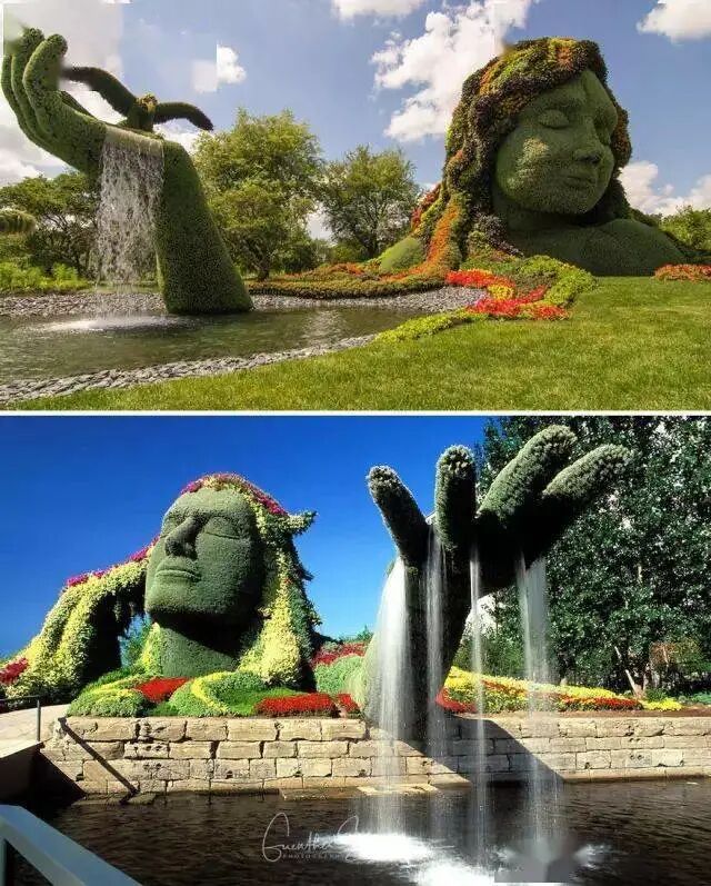 打破常规喷泉水景设计的局限性,用喷泉和植物雕塑结合的方式,将水和生态植被融合在一起,满足游客对大自然的奇妙幻想。